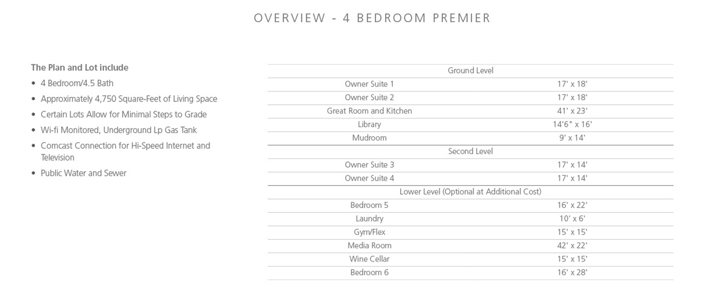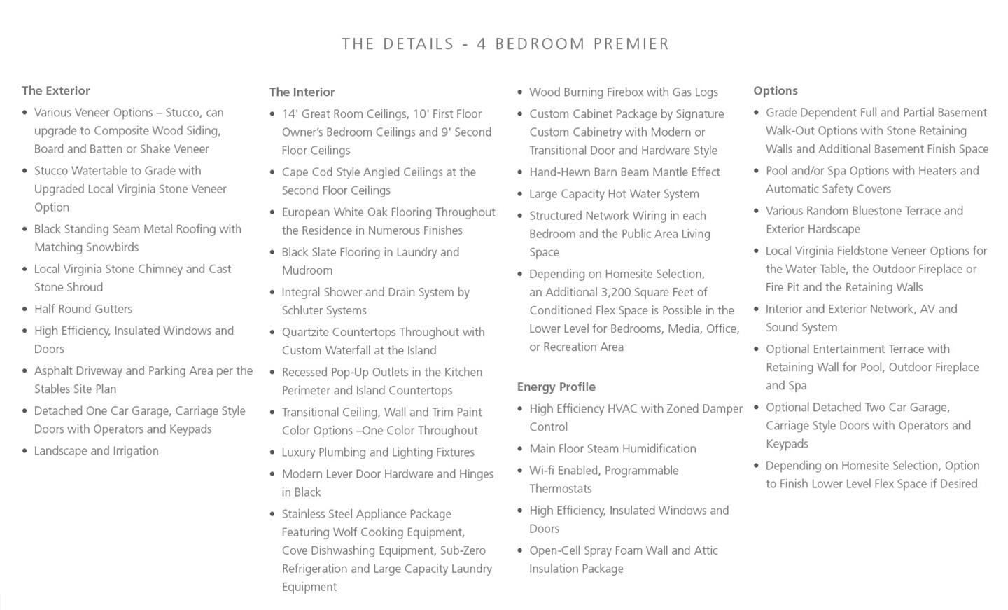 Approximately 4,750 square feet of lavish luxury and designer detail set the stage for The Stables 4 Bedroom, 4.5 bath Premier home plan. Beyond the charming entryway lies a main floor featuring two owners’ suites with soaring first floor ceilings and kitchen area including premier stainless steel appliances, custom cabinetry, and Quartzite countertops. A first-floor mudroom and laundry room with Black Slate flooring enhance the home’s design appeal and functional versatility. On the second level, two additional bedroom suites offer privacy for family and guests. An expansive courtyard further extends the wealth of entertainment, leisure, and viewing opportunities that come with this magnificent home. Enjoy glorious seasonal views from your own private Blue Ridge oasis. Depending on homesite selection, this home plan also offers a poured and conditioned basement perfect to create that additional flex space if you desire.